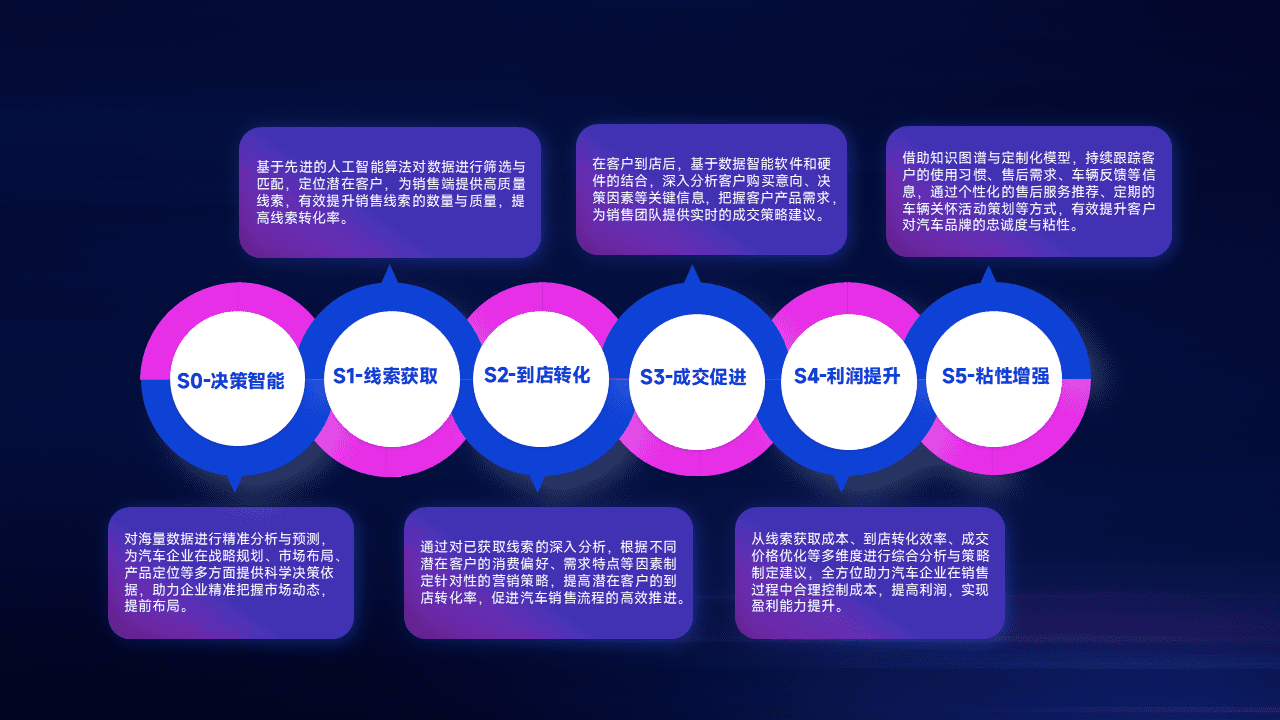 通过拓宽潜在客户来源、、、、优化线索分配并提高到店转化率,,以增强销售效率。。。同时,,,利用线索数据不断优化分析模型,,,,有效提升转化率,,,扩大营销影响力。。